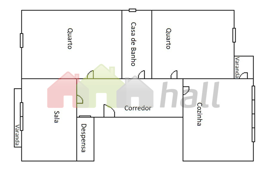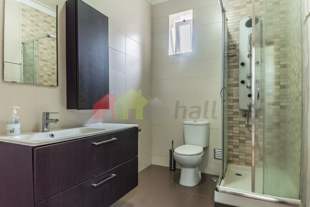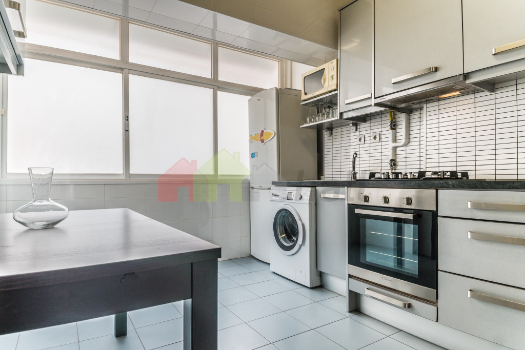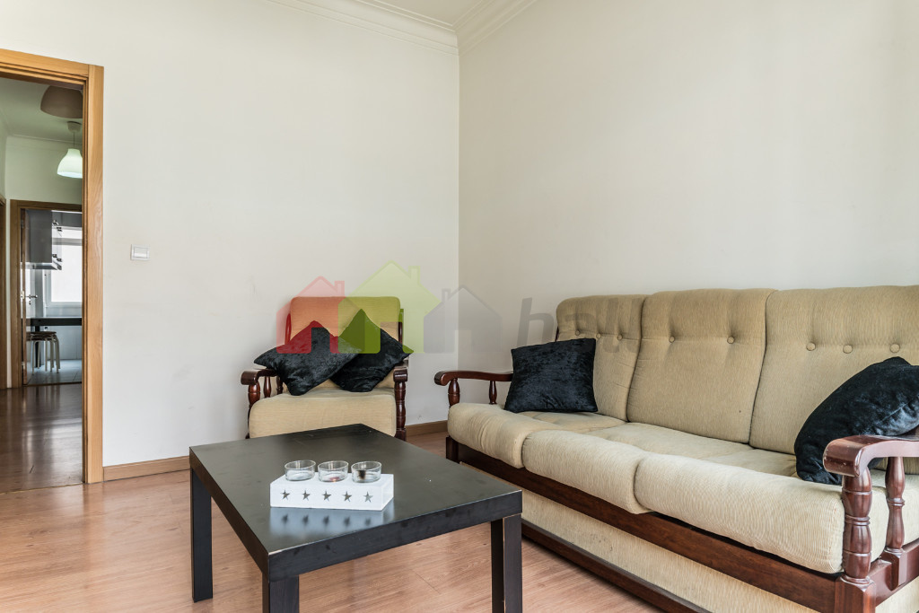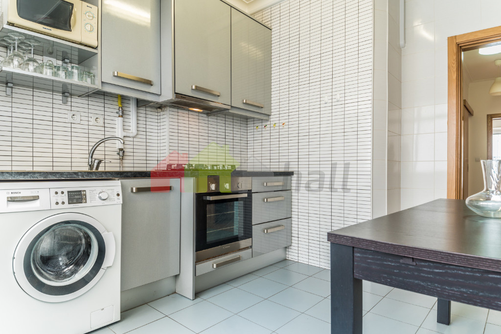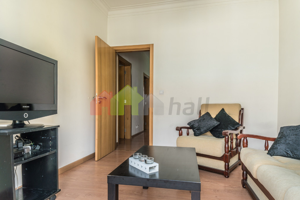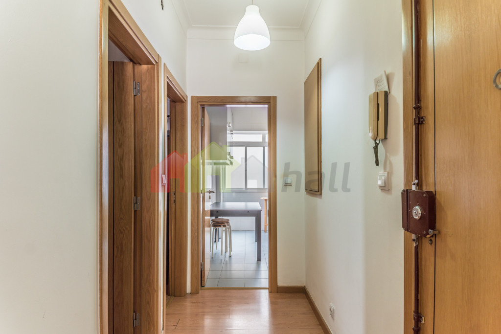 A habitação é composta por hall de entrada, sala de 11 m2 com pavimento flutuante e varanda, 2 quartos com pavimento flutuante, com 12 e 13 m2, casa de banho de 6 m2 com base de duche equipada com coluna de hidromassagem, cozinha de 13 m2 com varanda e equipada com forno, placa, esquentador e exaustor, despensa de 3,50 m2.